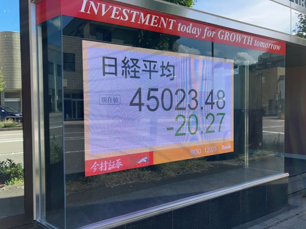ショーウィンドウには株価等を映し出す大型スクリーンがあり通行人の注目間違いなし